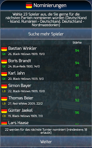 - (!) 211 Nationalmannschaften zu wählen! Jede mit ihrem eigenen, realen Fähigkeiten! Wenn Sie mit Ihrem Team gelingt, wird Ihr Verband werden jedes Jahr zu verbessern, den Bau neuer Stadien, die Entwicklung besserer Jugendspieler, etc. Erstellen Sie Ihre eigenen Fußball Realität!