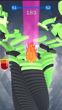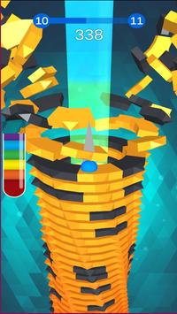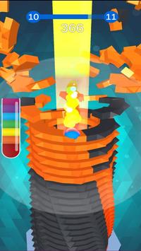 Your ball smashes like a brick through colorful platforms that block its descent stack ball