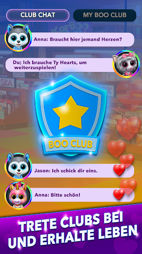 So funktioniert es. Wenn du dich durch superunterhaltsame und fesselnde Puzzle-Levels gesprengt hast, erhältst du eine Ty-Münze. Mit der Münze kannst du die Story-Quests freischalten, die uns zu allen Beanie Babies führen (weil wir UNBEDINGT wissen müssen, was mit ihnen geschehen ist). Sammle und lerne deine Lieblings-Boos kennen, die dir beim Vollenden von Levels helfen, trete Clubs mit deinen Freunden, gewinne Preise (sogar echte PLÜSCHTIERE), spiele weiter Levels, folge unserer Geschichte weiter und blah blah blah, du verstehst schon. Viel Spaß! Und übrigens, ich bin durch die vierte Wand gebrochen, damit wir beide dieses Gespräch führen können 😜