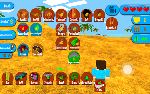 ▶ in den Wald fliegen und sammeln Würfel aus Palmen fünfmal schneller (Flughafen erforderlich)!