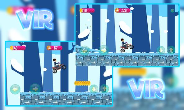 to live fantastic, crazy adventures with our robot boy:Vir? Do you really want to set off on a crazy and amazing journey with Vir in order to perform crazy, superpowerful jumps and fantastic, unbelievable acrobatic movements with his crazy motorcicle and to enjoy the real meaning of craziness with our superhero: Vir? If you want really to experience the best and the most craziest experiences with our hero in 4 different completely worlds and to enjoy your day to the fullest, you have to download our gameplay.