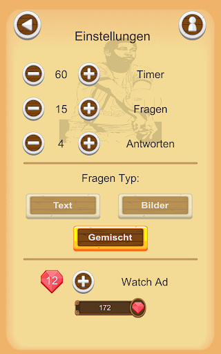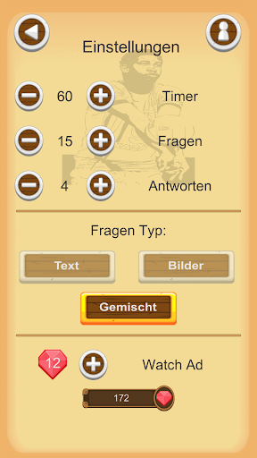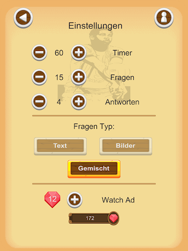 Dieses Spiel ist kostenlos erhältlich und bietet anpassbare Regeln für Ihre individuellen Bedürfnisse. Sie entscheiden, wie Sie spielen möchten. Die Anzahl der Fragen, Antworten und die Zeit, um eine endgültige Entscheidung zu treffen, finden Sie auf dem Bildschirm Einstellungen und dort können Sie IHR tolles Spiel erstellen.