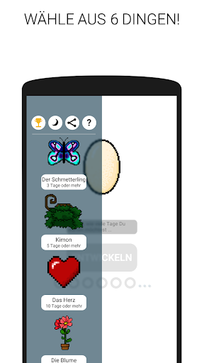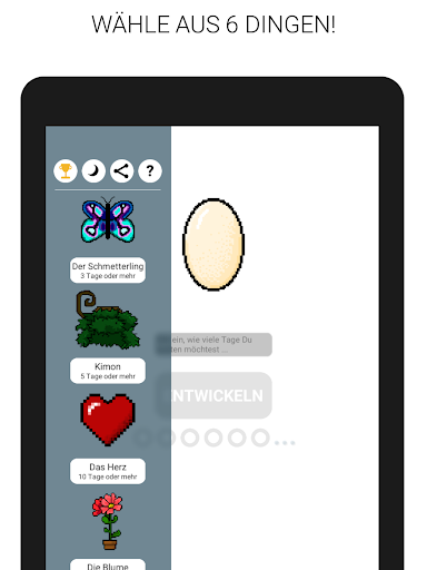 Wähle aus 6 interessanten Dingen und benutze deine Evolution Dots, um sie alle zu entwickeln! Aber nur die Geduldigsten haben das Zeug dazu, alle 50 Achievements freizuschalten!