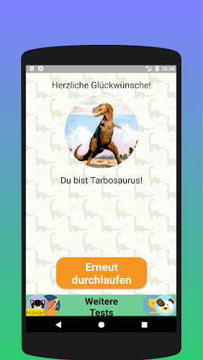 Oder Sie können diesen Test an Ihren Freund senden oder ihm einen Test auf Ihrem Smartphone geben, um herauszufinden, welcher Dinosaurier er ist.