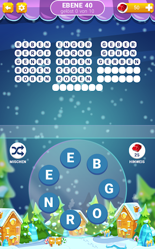 Bitte probiere diese neue Reihe bekannter Rätsel aus! Streichen Sie mit dem Finger über die Buchstaben, um Wörter zu bilden. Finde alle Wörter in der Liste, um zum nächsten Rätsel zu gelangen. Zusätzliche versteckte Wörter geben Ihnen zusätzlichen Bonus.