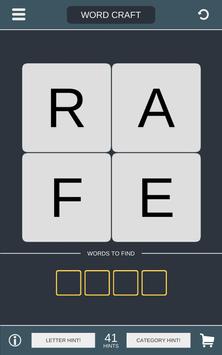 Word Craft is a word search game where you puzzle one's brains to find the words in a letter grid. The game starts with 2x2 puzzles and continues until 7x7 puzzles. Play all levels and get ready for puzzle challenges. This game will expand your word brain. It starts very easy but getting devilishly harder. Word Craft will make you a true word search and puzzle master!
