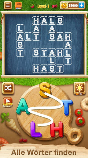 ◆ Verwenden Sie einfach die Finger, um die Buchstaben in der richtigen Reihenfolge zu verbinden. Nachdem Sie ein Wort erstellt haben, erhalten Sie Münzen und wenn Sie alle leeren Felder ausfüllen, wird ein neues Level freigeschaltet.