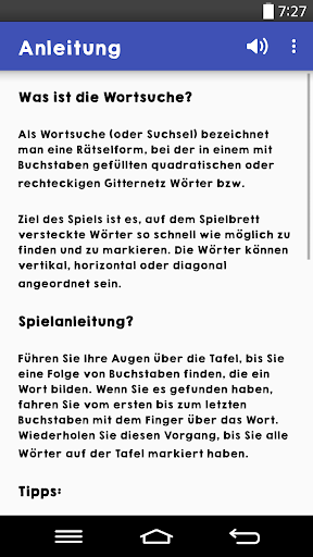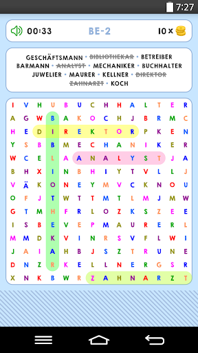 Die Wortsuche ist ein Puzzlespiel, das aus einer zufällig angeordneten Buchstaben besteht. Ziel des Spiels ist es, auf dem Spielbrett versteckte Wörter so schnell wie möglich zu finden und zu markieren. Die Wörter können vertikal, horizontal oder diagonal ausgeblendet werden.
