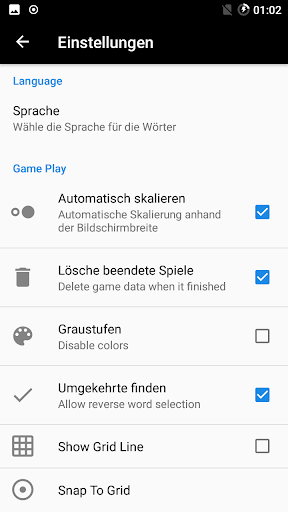 Bei dem Wörtersuche Spiel kannst du auch entscheiden, ob du in einer anderen Sprache spielen willst. Das Wortsuche Spiel ist Mehrsprachig. So kannst du z.B. auch in Spanisch oder Französisch . spielen.