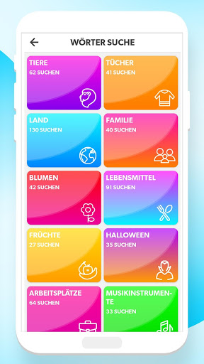 -> 15 Kategorien von Rätseln wie Tiere, Kleidung, Land, Familie, Blumen, Nahrung, Obst, Halloween, Jobs, Musikinstrument, Sport, Werkzeug, Transport, Gemüse, Wetter.