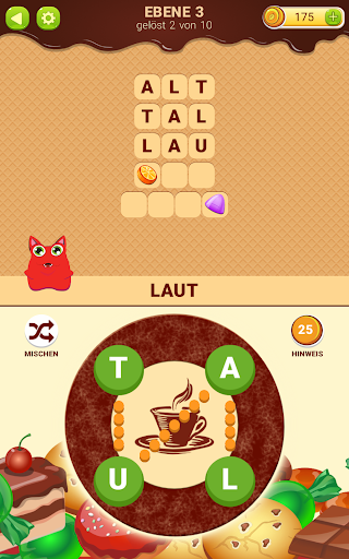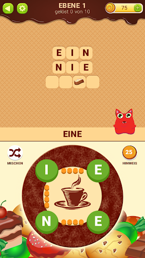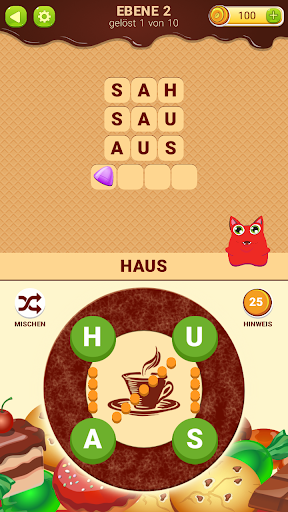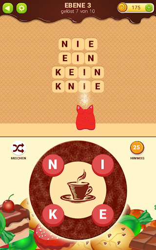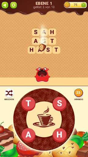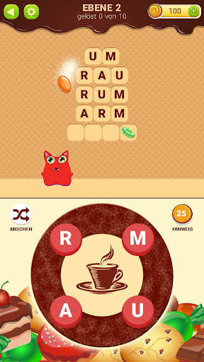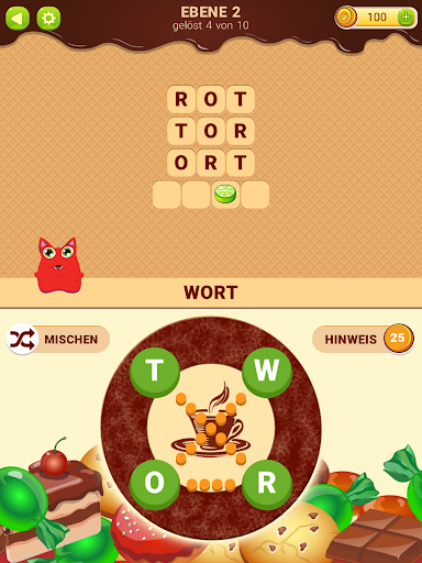 Einfache Kuchen! Wischen Sie mit dem Finger über die Buchstaben auf dem Teller, um ein Wort zu bilden. Heben Sie den Finger, und Mr.Sweets wird ein Vergnügen bekommen.