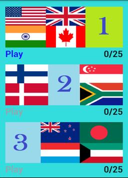 1. All - It has list of all countries, divided into 10 levels. For clearing a level, one has to answer 21 or more questions correctly.