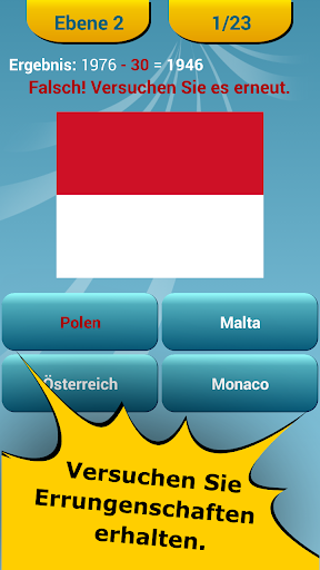 - Auf jeder Ebene gibt es 23 Länder Flaggen (insgesamt 230 Nationalflaggen zu erraten!),
