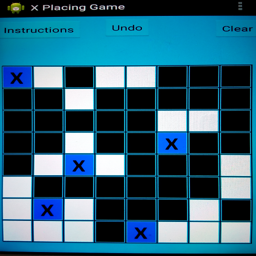 *** Your task is to place the N (N can be 5, 6, 7, 8 or 9 depending on board size) crosses (X) on the white squares in such a way so that each row and each column contains exactly one cross (X).