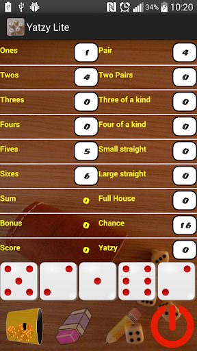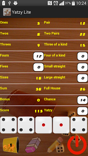 Yatzy is a game played with dice. The goal is to score as much points as possible.