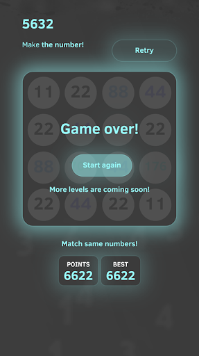 - The same number tiles will be merged and make a new number as their sum. like: 11 11=22, 22 22=44, 44 44=88.......