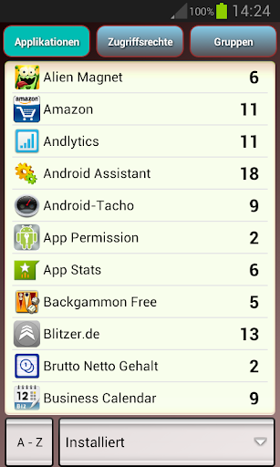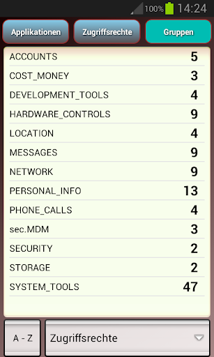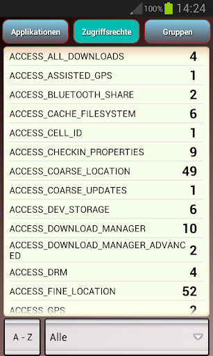 Zeigt alle Zugriffsrechte von Apps und Prozessen an die sich auf Ihrem Gerät befinden. ✔ Alle Apps ✔ Alle Zugriffsrechte ✔ Alle Gruppen Keywords: monitor editor manage control explorer