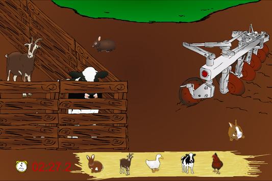 Finde die versteckten Nutztiere. Wenn Sie ein Tier finden, erscheint ein grüner Knopf hinter dem gerade gefundenen Tier. Drücken Sie die Taste, um das Geräusch des Tieres zu hören. In jedem der 5 Level erhalten Sie 3 Minuten Zeit, um die versteckten Nutztiere zu finden.