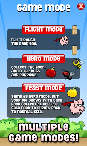 * Feast Mode: Same as hero mode, but your pig grows with each food collected. Collect the golden food to shrink back to normal size.