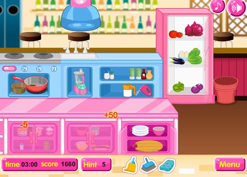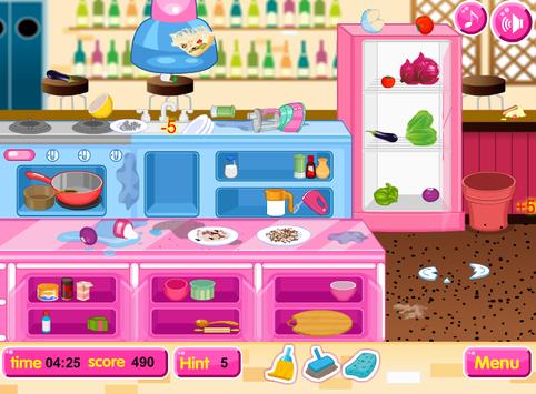 Owning a restaurant requires a lot of hard work. Every night, after the last customer leaves, you and your team of gourmet chefs must spend hours cleaning up after the dinner service so that the restaurant is clean for the next day. But, a few of your workers called in sick today and now you'll have to clean up all by yourself. Your progress is timed, so hurry up and get the kitchen in order within the time limit to earn a high score and save the restaurant in this fun online cleanup game for girls!