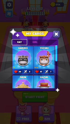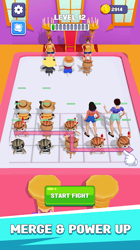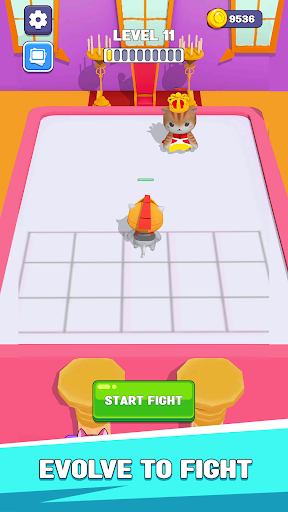 The levels will gradually increase in difficulty. Enemies are increasingly agile with unpredictable power, and sometimes they are not just 1 but 2, 3 at the same time, which forces you to act fast with a good strategy to destroy them quickly. After each victory, you will unlock more powerful animals. Merging them will create superpower Cats or Warriors. Step by step going up like that, you will fight the boss at the end of the game.