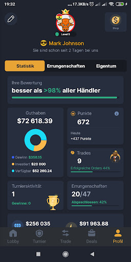 🏆 Fordern Sie Ihre Freunde heraus! Nehmen Sie an Turnieren teil, messen Sie sich mit anderen Händlern und gewinnen Sie großzügige Belohnungen. Klettern Sie an die Spitze und führen Sie die globale Rangliste an!