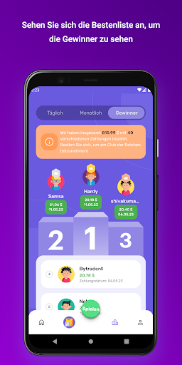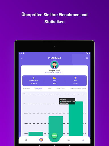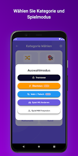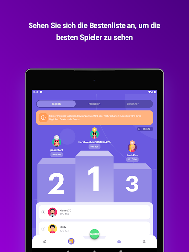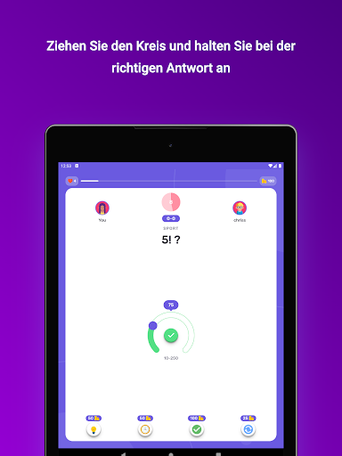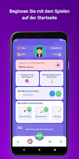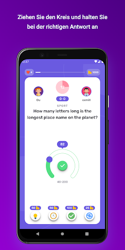 Testen Sie Ihr Wissen über Ihre Lieblingssportarten, Filme, Bücher, Mathematik und mehr. Beantworten Sie die Fragen in 7 verschiedenen Kategorien, geben Sie der richtigen Antwort näher als Ihr Gegner und gewinnen Sie. Kategorien, in denen Sie Ihr Wissen testen können, sind Sport, Naturwissenschaften, Geschichte, Erdkunde, Mathematik, Kunst und allgemeine Kultur. Sei deinen Gegnern voraus, indem du verschiedene Joker gewinnst und deinen Joker im kritischsten Moment einsetzt. In diesem völlig trivialen Spiel können Sie sich mit Ihrem Freund messen und entscheiden, wer am meisten weiß. Sie können dank Ihres Wissens sogar Geld verdienen. Es ist ein einfaches Spiel, um ein Spiel zu verdienen, und wir teilen unsere Einnahmen mit unseren Benutzern. Spielen Sie einfach das Spiel und versuchen Sie, der Beste zu sein