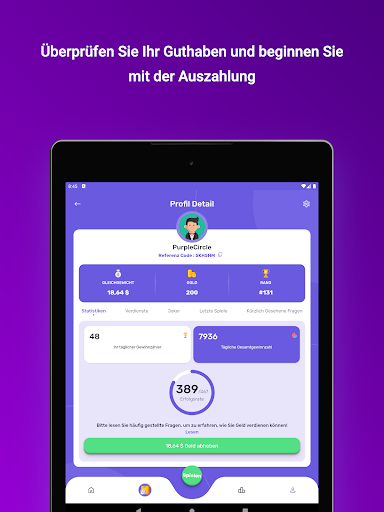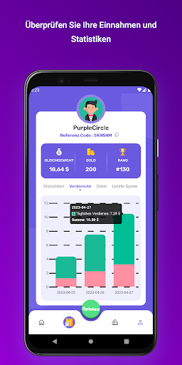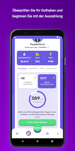 Alles, was Sie tun müssen, ist, das Spiel jetzt herunterzuladen und zu spielen. Wenn Sie das Spiel gewinnen, beginnen Sie, Geld zu verdienen. Bist du bereit, der Beste in Purple Circle zu sein? Fordern Sie Ihre Freunde und Familie zu einem Purple Circle-Spiel heraus und beweisen Sie, wie schlau Sie sind! Worauf warten Sie noch, starten Sie jetzt!