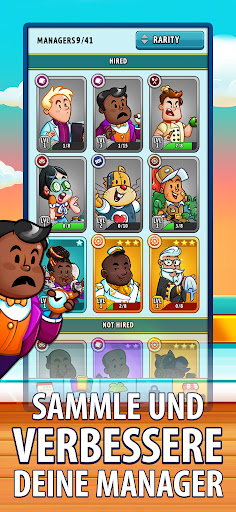 Verdiene und sammle verschiedene Resortmanager, um das perfekte Paradies zu errichten! Jeder Manager besitzt einzigartige Fähigkeiten! Befördere deine Manager, um mehr Cash zu verdienen, sodass du dich voll und ganz entspannen und auf deine Karriere als Urlaubs-Tycoon konzentrieren kannst!