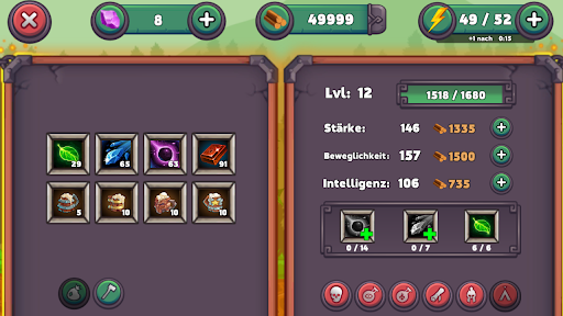Die Kampfmechanik von Cutland: Fantasy Hero Clicker basiert auf der Herstellung von Artefakten aus der gesammelten Beute. Tippe auf einen freundlichen Krieger und erhalte Zugang zu neuen Äxten und Ausrüstung. Bleib nicht lange im Verlies, denn dein tapferer Held will den Überfall fortsetzen.