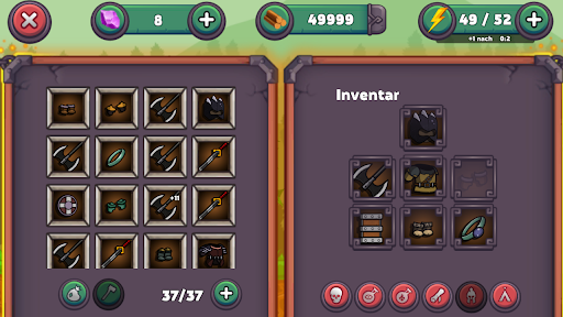 Beinhaltet Variabilität in der Entwicklung der Kampfmechanik. Begeben Sie sich auf einen endlosen Fällangriff und erwerben Sie die richtigen Fähigkeiten nach Ihren Wünschen. Wenn Ihr tapferer Held Schwierigkeiten hat, Bäume zu drücken, ändern Sie die Welt und kehren Sie später mit einem stärkeren Upgrade zurück.