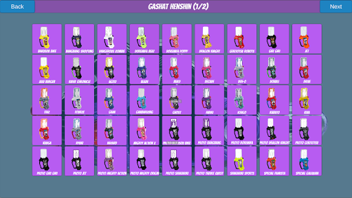 2. Click the Gashat Icon and choose your favorite henshin form, or Bugster form.