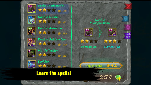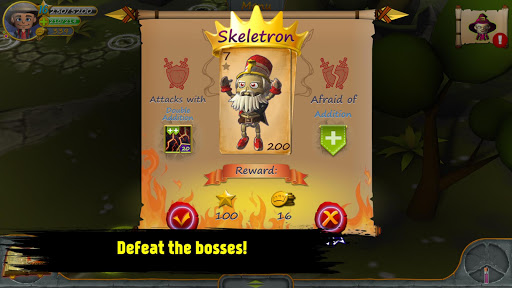 Hello Friend! With sadness we inform that the fairy world of Mathmagic was captured by monsters... We are counting on you, because only you can deal with them with the help of your knowledge and mathematical spells! Pump the hero, learn new abilities, collect artifacts and conquer the world's evil!