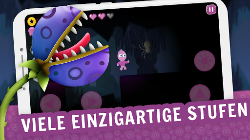 Kevin ist ein lila Tier, das in einer ruhigen Giftpilzstadt 🍄 lebt. Wenn seine Liebe auf den ersten Blick von einem riesigen Zyklop 👹 entführt wird, muss der Held handeln und seine Liebe retten. Die Straße zum Cyclops Castle 🏰 ist voller Schwierigkeiten, aber mit Ihrer Hilfe können wir es schaffen. Hilf Kevin, seine Geliebte ❤️ zu retten, alle Orte zu vervollständigen und alle Feinde, einschließlich den Zyklopen! ✨