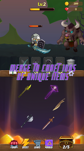 Merge Waffen, Schilde, Rüstung und Schmuckstücke, um der stärkste Krieger möglich zu werden!Tauchen Sie ein, in das Upgrade Ihrer Heldenstatistiken und -kompetenz, basteln Gegenstände und nehmen Sie immer immer schwierigere Bosse ein.