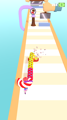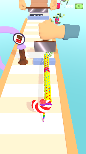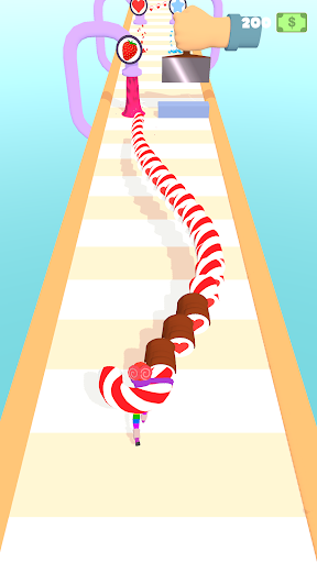 Stack the candies in the candy cane! Upgrade your candy by pouring sauce and sprinkles on it! Cut candy cane to earn money! Avoid obstacles to protect the candy cane! Pack the candies!