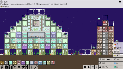 Bauen Sie eine große Stadt in diesem vertikalen City Builder im Weltraum! Sammeln Sie Ressourcen, dann bauen und erforschen Sie Ihren Weg in eine bessere Zukunft! Wachsen Sie Ihre Stadt von einem Erkundungsschiff zu einer riesigen Metropole voller fortschrittlicher Technologie. Was werden Sie bauen?