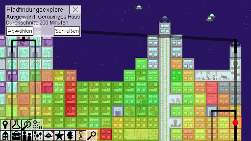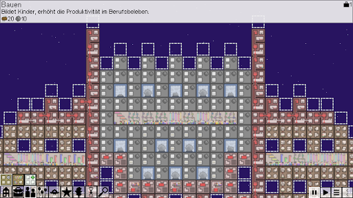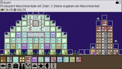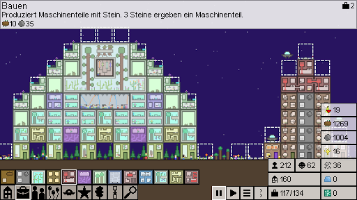 Mit vielen verschiedenen Gebäuden kannst du die Stadt entwerfen, die du willst. Wird es ein grünes Hippie-Paradies voller Gärten, eine riesige Party oder eine einzige große Fabrik sein? Wird Ihre Kolonie ein einziges, riesiges Gebäude sein oder verteilen Sie sie über Hunderte von Welten? Besteht Ihr Transportsystem aus effizienten Teleportern oder aus einem chaotischen Durcheinander von Landeplätzen? Es ist alles Ihre Entscheidung!