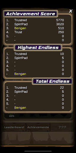 LEADERBOARDS - Messen Sie sich online mit Freunden oder Menschen durch unsere verschiedenen Leaderbords.