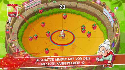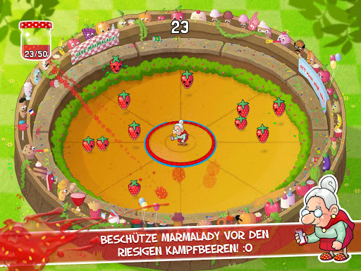 Entführt aus ihrem Garten von den rachesüchtigen Kampfbeeren und verschleppt in die Erdbeer Marmeladen Arena braucht Marmalady jetzt Deine Hilfe! Verarbeite alle Erdbeeren zu Marmelade bevor sie Ihr zu nahe kommen! Sobald du genug gesammelt hast, kann diese coole Oma, ausgerüstet nur mit ihrem Handy, mit Textnachrichten außergewöhnliche Unterstützung anfordern. Werde Teil dieses fruchtigen und mit action bepacktem Klick-Abenteuers!