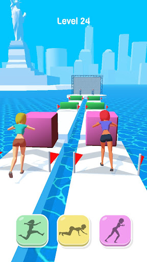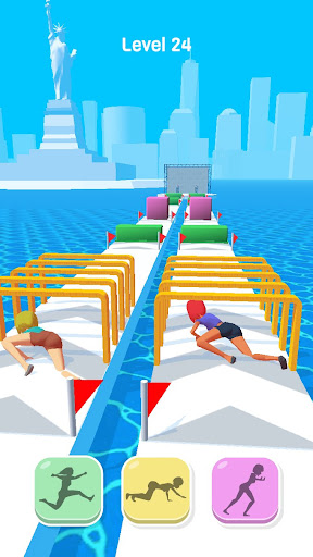 Sprung über grüne Barrieren, krabbeln Sie unter gelben Balken und schieben Sie den riesigen roten Würfel in das Wasser, um eine Brücke herzustellen.Drücken Sie die Summer-Taste auf der Bühne zuerst, um Ihren Gegner in diesem äußerst süchtig machenden 3D-Rennspiel zu schlagen.