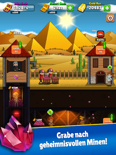 Stellen sie erfahrene manager für ihre minen ein und automatisieren sie ihren workflow! Mögen ihr geld und ihr ungenutzter geldfluss niemals aufhören! Lassen sie ihre bergleute weiter nach gold und anderen erzen graben, auch wenn sie offline sind!