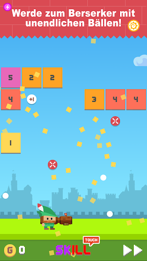 Passe den Wurfwinkel der Bälle indem du gedrückt hältst und mit deinem Finger ziehst, um mit gekonnten Würfen die Blöcke zu zerbröseln.