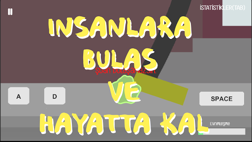 Oyuna bir virüs olarak başlayıp insanlara bulaşmayı amaçlıyoruz.İnsanlara bulaştıkça evrimleşip kendi yeteneklerimizi geliştiriyoruz.Dezenfektan aracı ve evrim barımız oyundaki engellerden biri.Bakalım kaç gün hayatta kalabileceksin...