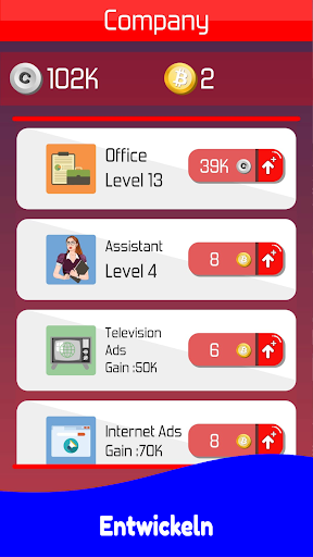 Beginnen Sie mit einem kleinen Feld und werden Sie zum größten Hersteller. Steigern Sie Ihren Ruf und freunden Sie sich mit den Produkten an, die Sie auf dem Markt kaufen. Erweitern Sie Ihr Geschäft kontinuierlich. Werben Sie für Ihr Unternehmen, um das Einkommen all Ihrer Unternehmen zu steigern. Mehr Mitarbeiter und ein besseres Büro bedeuten immer mehr Geld!