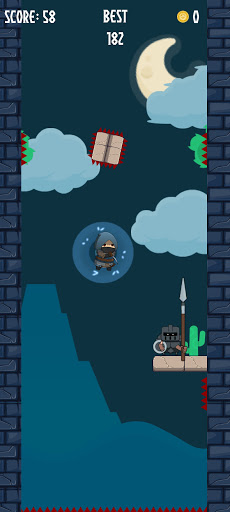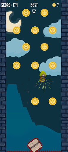 Tippen Sie auf und ziehen Sie eine beliebige Stelle auf dem Bildschirm, um Ihren Ninja-Sprung zu machen.Meistere den doppelten Sprung, langsame Bewegung und schlägt in Feinde, um zusätzliche Münzen zu gewinnen.