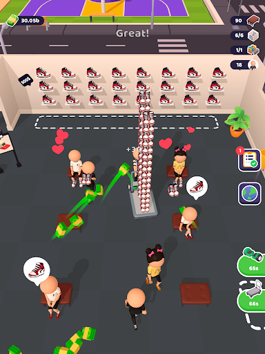 You can have the most popular sneaker shop in town by building and extending your sneaker shop. Serve the customers, earn money, extend the shop and unlock new collection shop. The more you earn money the more you can massively extend your shop. Let’s get started!