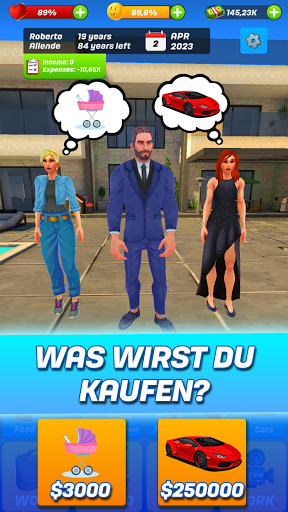 Nachdem sie ein erfolgreicher businessman geworden sind, müssen sie sich wie im richtigen leben um Ihre persönlichen Beziehungen und Ihre Gesundheit kümmern. Dieser Lebenssimulator oder das Lebensspiel bietet Ihnen all diese Erfahrungen von Ihrem Handy aus. Es ist wirklich erstaunlich, vom Obdachlosen zum erfolgreiche Geschäftsmann zu werden!