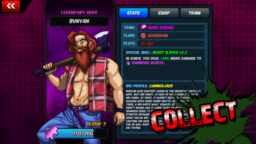 Die Zombies haben die Welt übernommen! Rekrutieren Sie Helden und retten Sie die Bürger, um Ihnen beim Wiederaufbau Ihrer Stadt zu helfen. Bilden Sie Ihre eigene Bande und konkurrieren Sie mit anderen Spielern. Mit Ihren Freunden zusammenarbeiten, um sich einem Razzin anzuschließen und monströse Chefs aufzunehmen. Es liegt an Ihnen, die Welt aus der Zombie-Bedrohung zu retten!