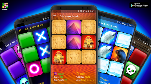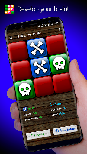 Das ist ein logisches Spiel zwischen einem Spieler und einem Android auf einem quadratischen Feld 3x3 Zellen oder grösser (12x12), (15x15). Einer Spielt mit "Kreuzen" und Anderer mit "Kreisen".